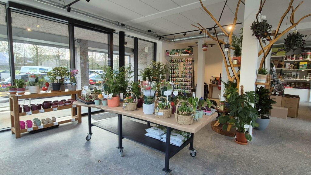 De tuinwinkel biedt een ruime keuze aan binnen- en buitenplanten: vaste planten, eenjarigen, klimplanten, sierheesters, fruitbomen…