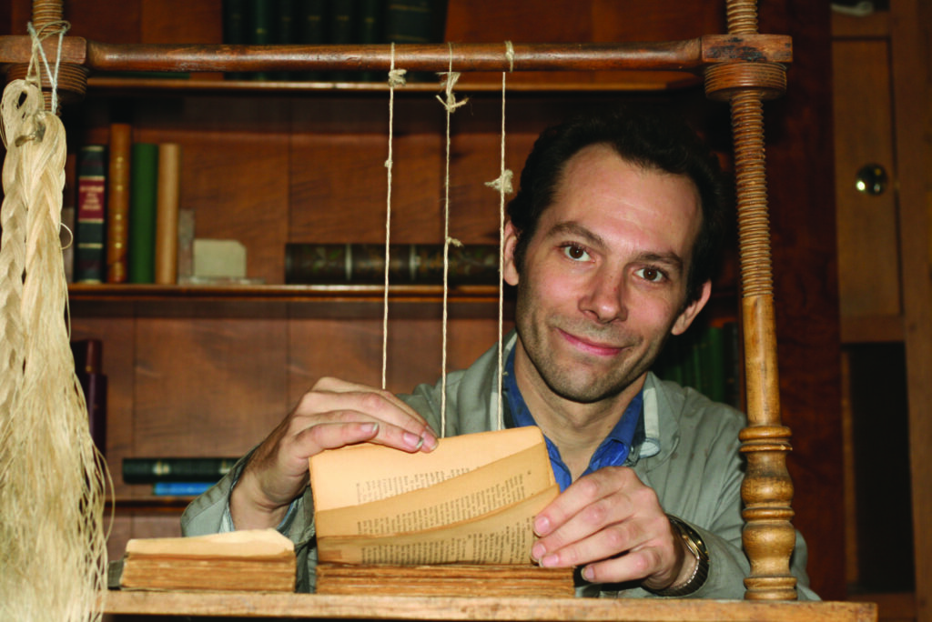 De boeken worden gerestaureerd en manueel genaaid en bekleed met traditionele technieken (afgeronde rug, naaien met linnen draad, kartonage) en volgens de wensen van de klant in verschillende materialen: canvas, stof, imitatieleer, rexine en leder, met of zonder vergulding. Dit werk kan rechtstreeks bij u of in het atelier van L’Ouvroir uitgevoerd worden.